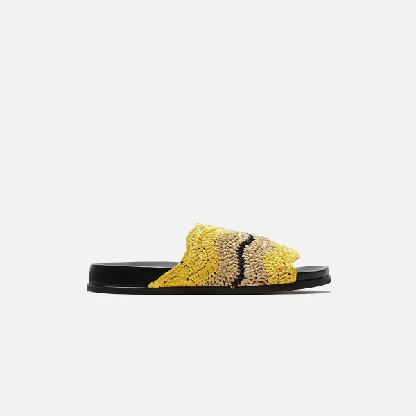 Slide SilhouetteRound ToeOpen Toe Wide Raffia BandLeather FootbedRubber Outsole Style: Fbmr002601P5495Zo540Color: Sun / …
